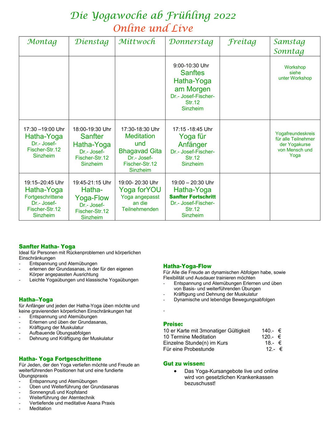 Kursplan - Mensch & Yoga